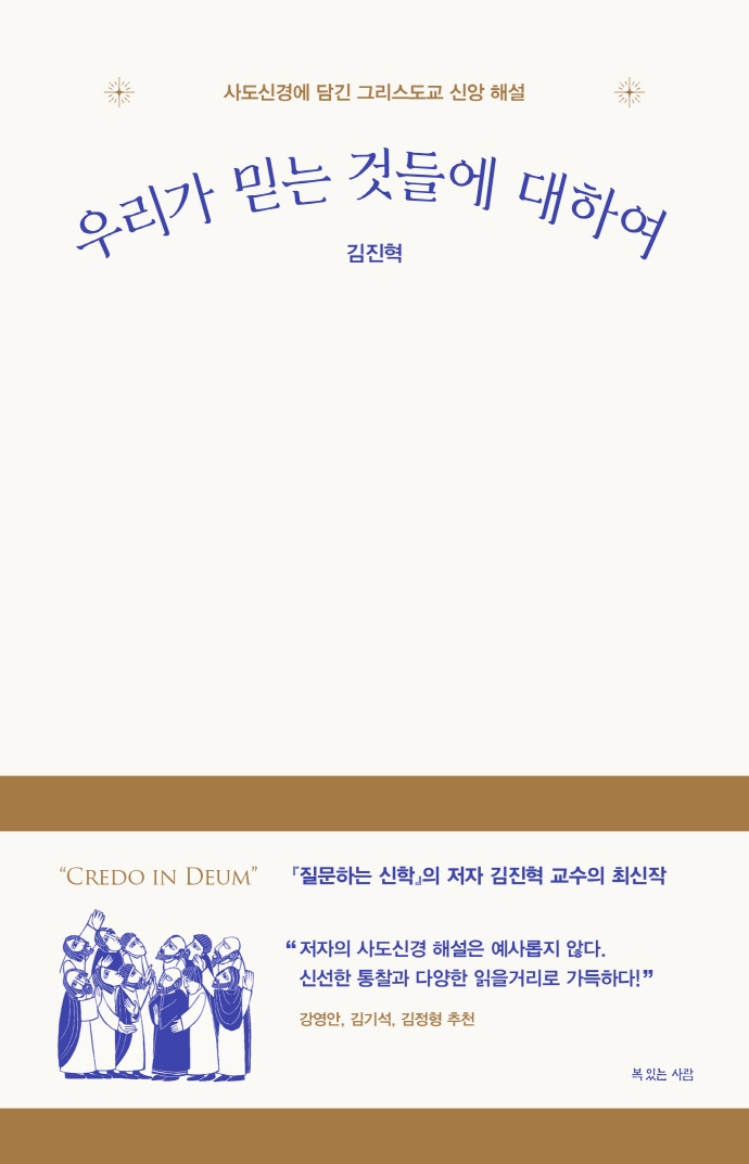 사도신경은 그리스도인이라면 믿어야 할 바를 핵심적으로 요약한 고대교회의 신앙고백이다. 십계명이나 주기도문처럼 성경에 기록되어있지 않기 때문에 사도신경이 가지는 권위를 인정하지 않는 사람도 있지만, 그리스도이신 예수를 통해 계시된 삼위일체 하나님의 존재와 활동에 전 생애를 걸겠다는 공동체적 고백이 역사와 전통과 함께 오롯이 담겨있다는 점은 여러 교단의 신학을 초월하여 인정하지 않을 수 없을 것이다. 저자 김진혁은 특정 교단 신학을 변증하듯 사도신경을 풀어내지도 않을뿐더러 조금은 지나치다 싶을 정도로 개성 있는 생각과 주장을 조심하며 글을 써 나간다. 그러므로 이 책은 신학을 전공하지 않은 기독교인뿐만 아니라 기독교에 관심 있는 비기독교인이 읽어도 치우치지 않은 기독교 신앙과 신학에 대한 안내를 받을 수 있으리라 생각한다. 처음으로 기독교 신학에 관심을 가지게 된 기독교인에게는 입문서로써 손색이 없을 것이다.
