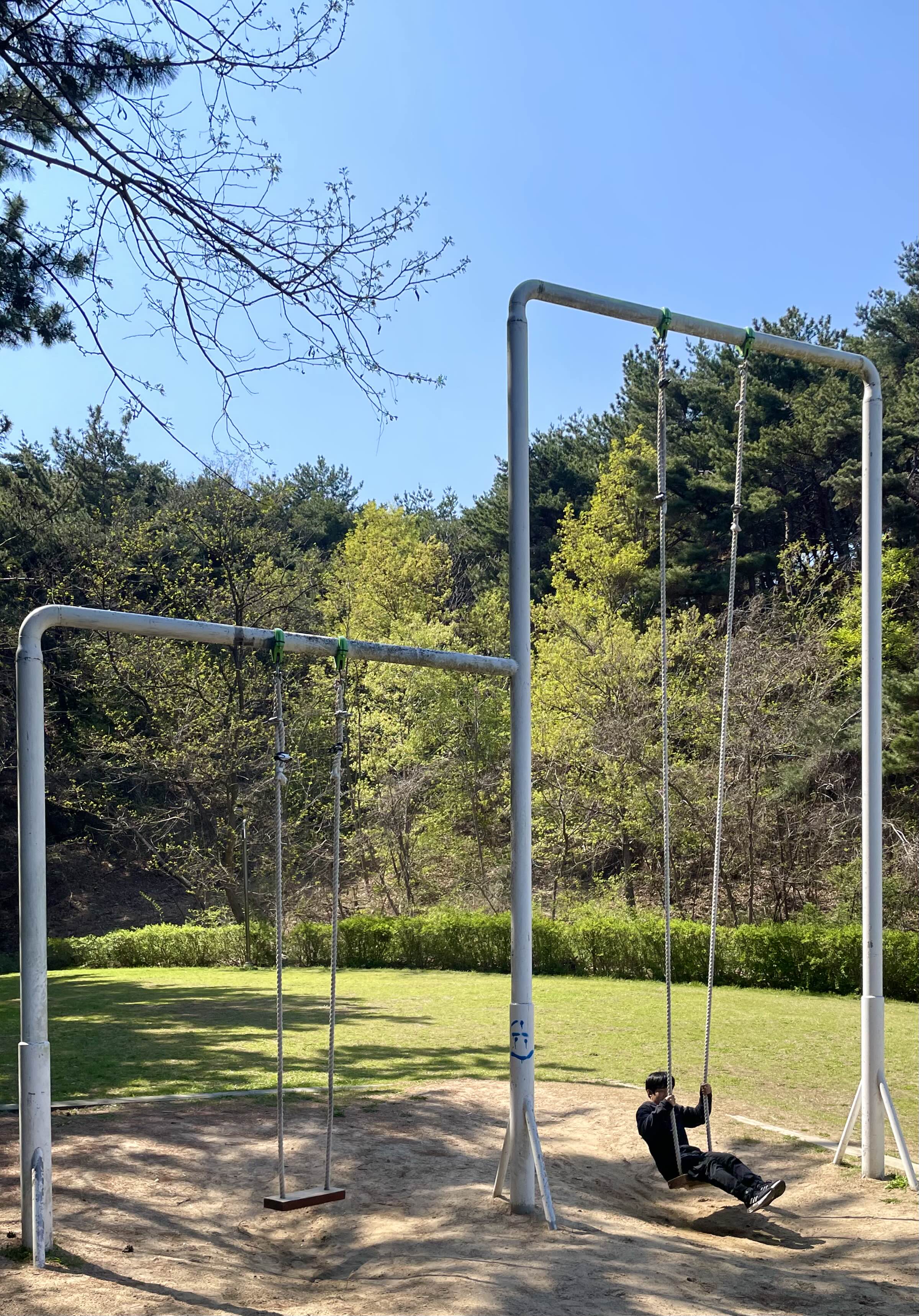 탁 트인 동해 바다가 보이는 공원의 한 구석, 엉뚱하게만 보이는 곳에 설치된, 마치 미국에 다시 온 것만 같은 기분까지 들었던, 동화 속에나 나올 법한 커다란 그네. 나는 힘껏 아들의 등을 밀었고, 아들은 하늘을 잠시 날았다.