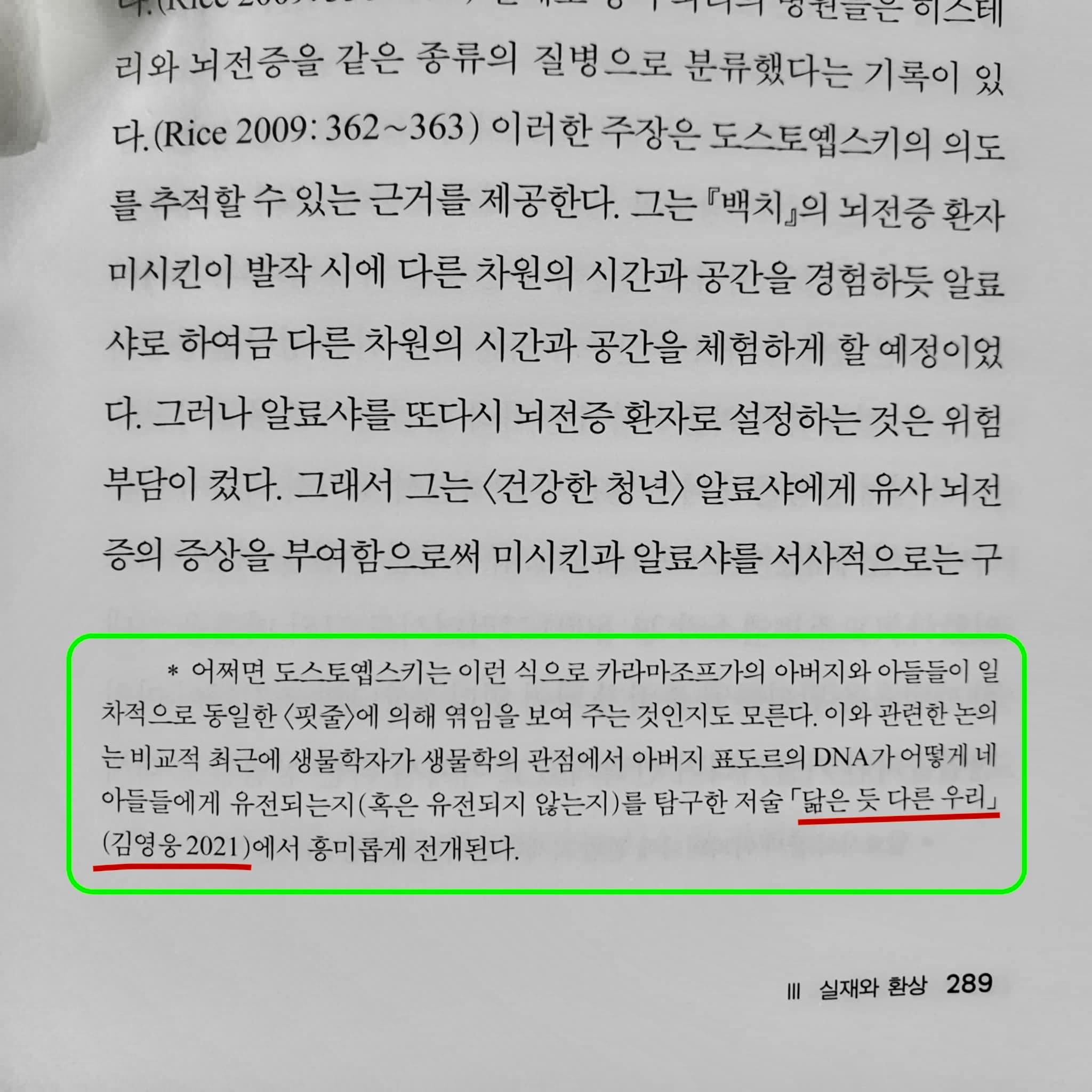 이럴수가! 석영중 교수님의 신간 '눈, 뇌, 문학'에서 나의 두 번째 저서 '닮은 듯 다른 우리'가 인용되었다! 가문의 영광이다!!! 가보로 선정^^