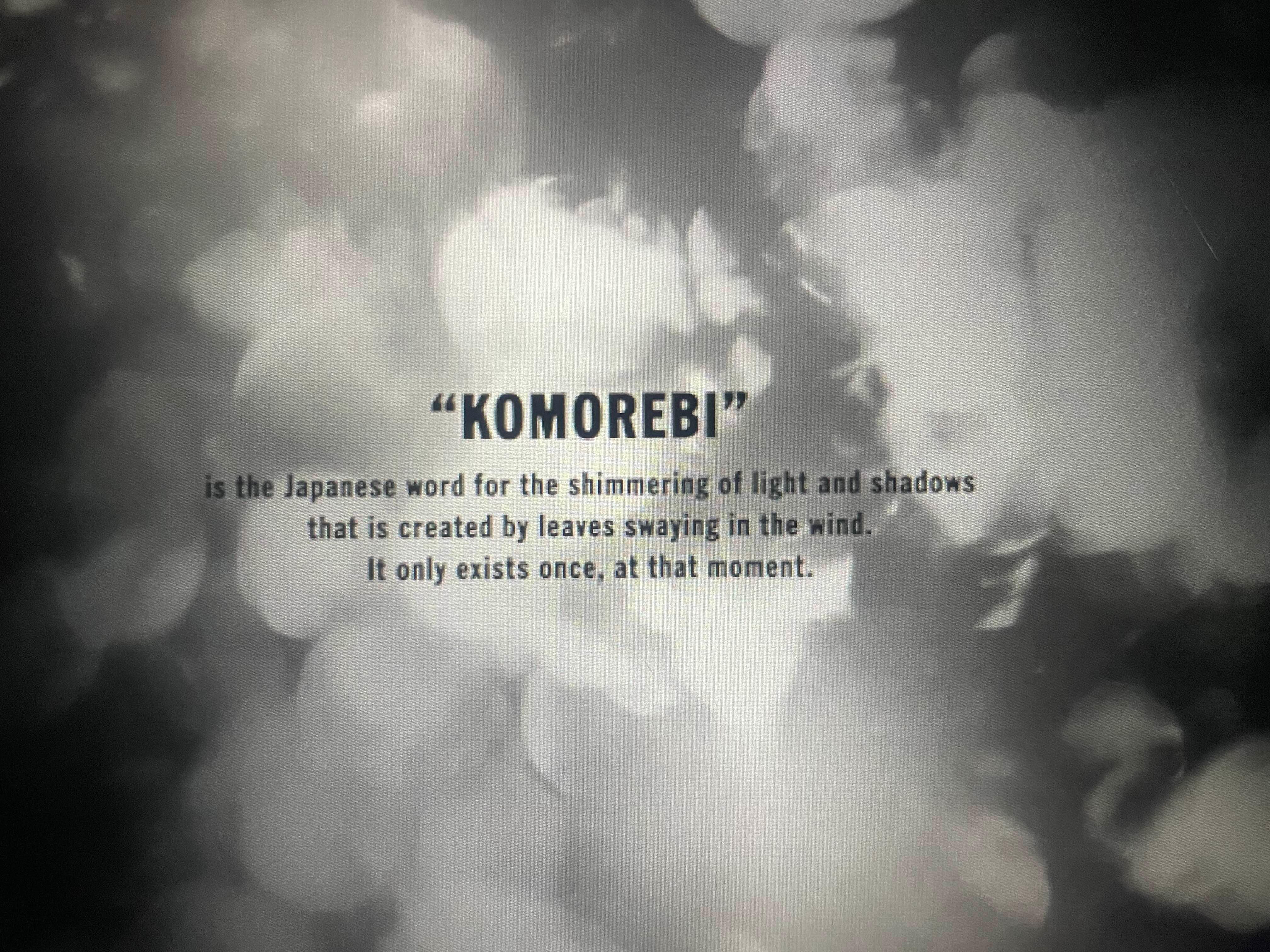 is the Japanese word for the shimmering of light and shadows that is created by leaves swaying in the wind. It only exists once, at that moment.