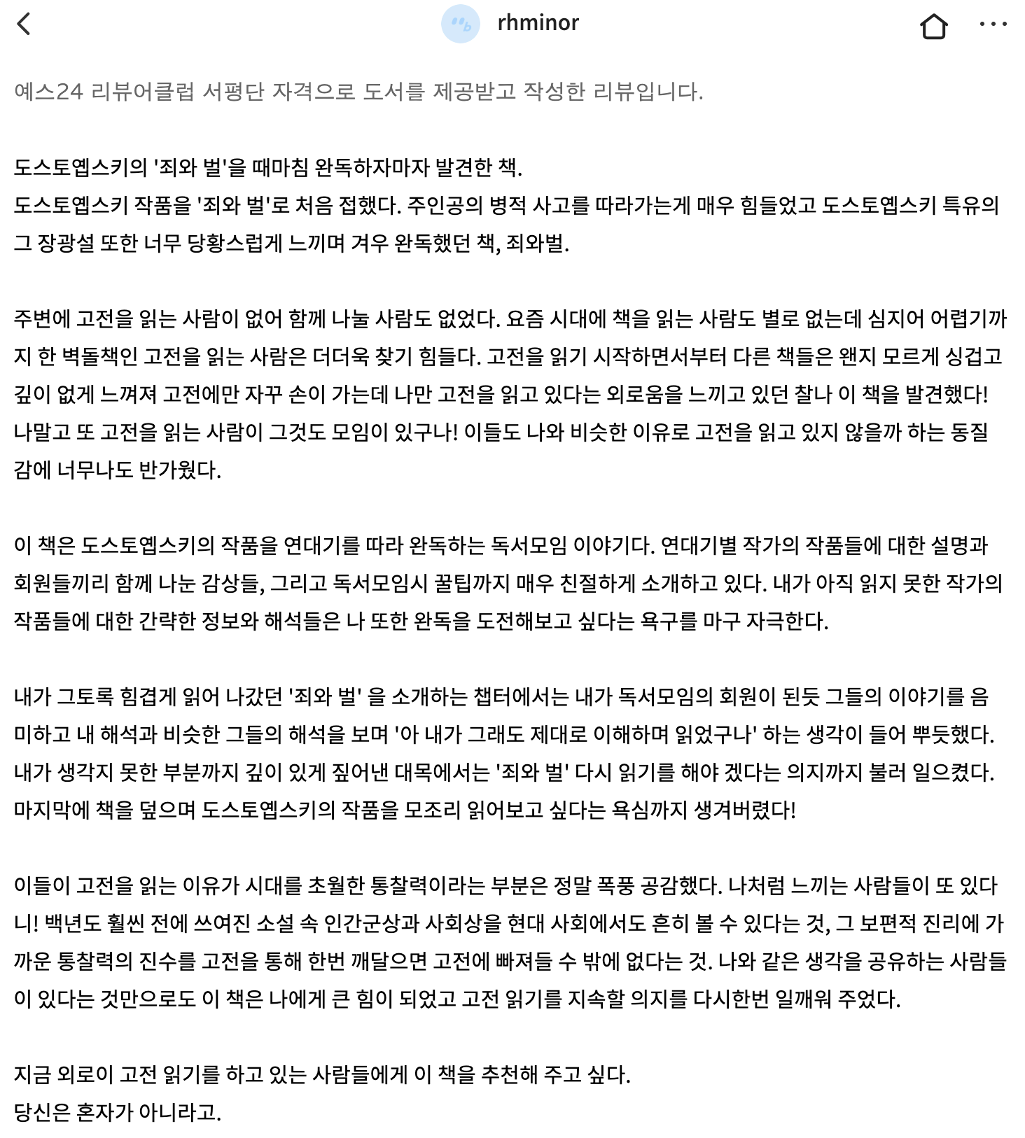힘이 나는 리뷰가 yes24에 올라왔다. 도스토옙스키에 막 입문하여 힘겨워하고 계신 독자분. 마침 내 책을 만나 열정이 뽐뿌질되었다고 고백하신다.