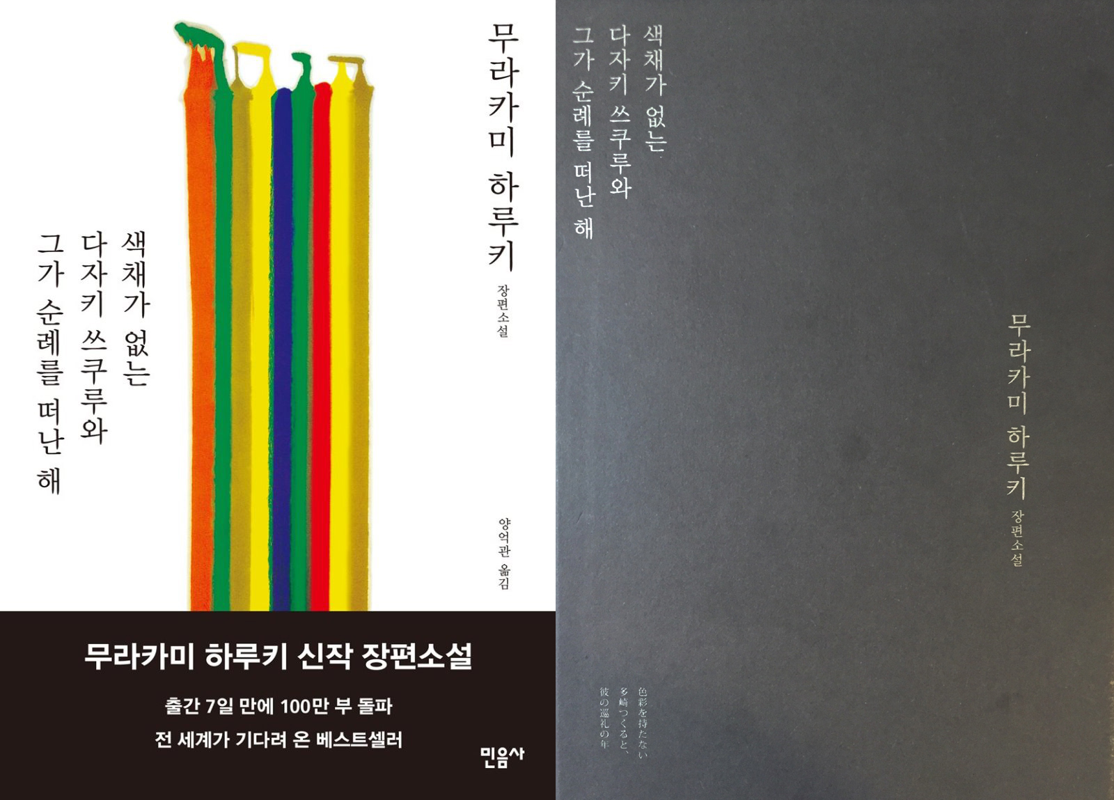양장본인 이 책을 감싸고 있는 컬러풀한 껍데기를 벗기면, 무채색의 하드커버가 그 모습을 드러낸다. 색채가 없는 다자키 쓰쿠루. 알고 보니 그는 색채에 둘러싸여 있었다. 어쩌면 그는 애초부터 색채가 없었던 게 아니라, 색채를 가진 이들과의 진정한 교류를 하지 못했던 게 아닐까 생각해본다. 인간 관계에서 스스로를 소외시킨다면, 그 어떤 아름다운 색채도 무채색으로 변색되어 버리지 않을까. 색채가 있든 없든 인간이라는 이유 하나만으로 이루어지는 관계. 사라를 만나고 쓰쿠루는 그제서야 그런 관계를 시작할 수 있지 않았을까 하는 기대를 해보며 마지막 책장을 덮는다.