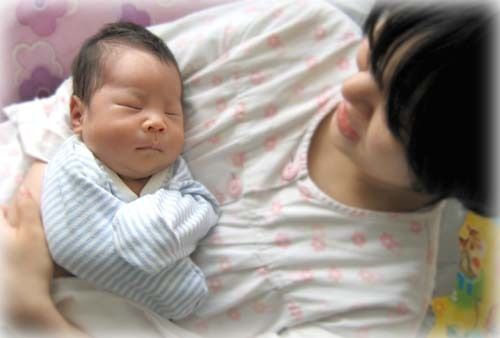 엄마 품에 안겨 음악 감상하는 현웅이.